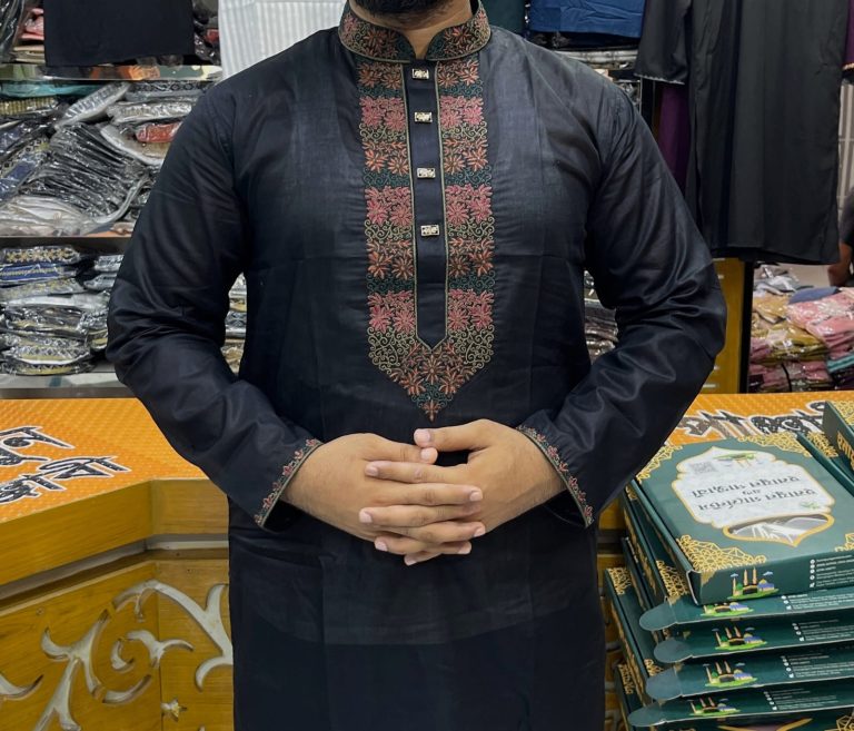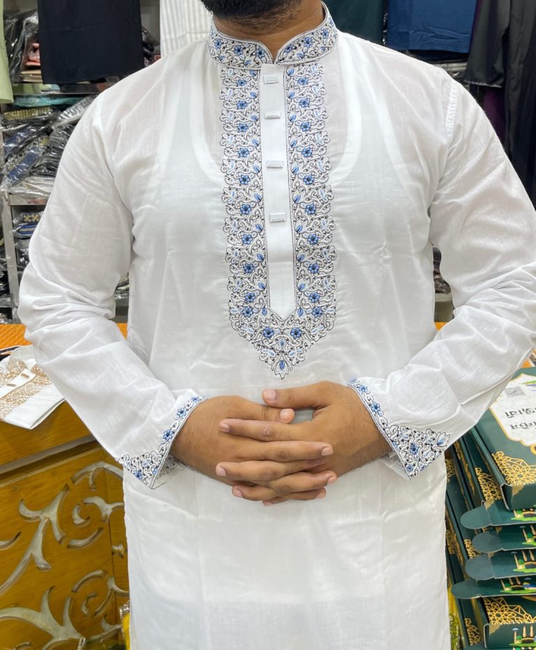 প্রিমিয়াম অরিজিনাল ধুতি কটন এমব্রয়ডারি পাঞ্জাবি [ Code: D-101 ]